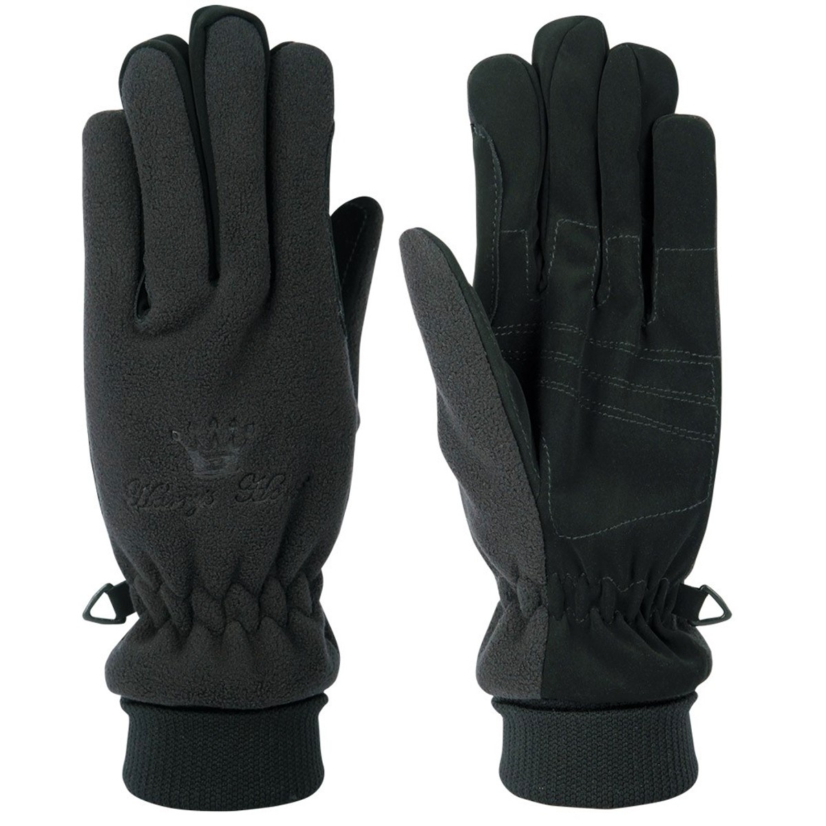 Водонепроницаемые флисовые перчатки для верховой езды (riding gloves). Область ладони выполнена из противоскользящего материала, что обеспечивает хорошее сцепление с поводом. Благодаря высокому манжету и резинки в области запястья, перчатки плотно сидят на руке.