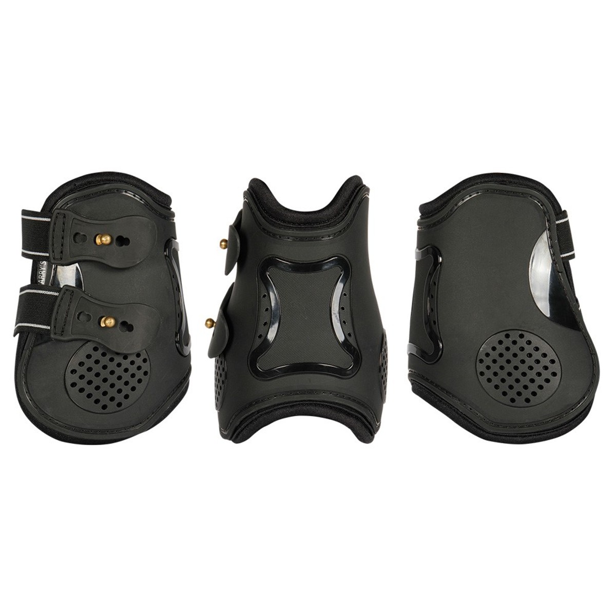 Ногавки анатомической формы (Tendon Boots Hind). Мягкая подкладка из высококачественного ударопоглощающего неопрена, позволяющего коже «дышать». Внешняя сторона выполнена из прочного качественного пластика с отверстиями для дополнительной вентиляции. Ногавки очень легко снимаются и одеваются благодаря простым эластичным зажимам.