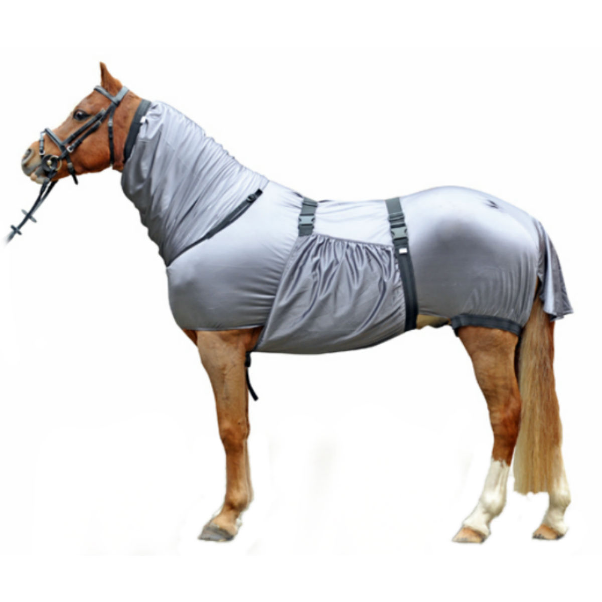 Летняя противомоскитная попона (Anti-fly Rug) из дышащего прочного материала обеспечивает эффективную защиту лошади от насекомых. Попона защищает все туловище животного, в том числе шею, живот и хвост. Попона, благодаря наличию различных ремней и резинок, плотно прилегает к телу и не соскальзывает. Материал попоны легок в уходе.