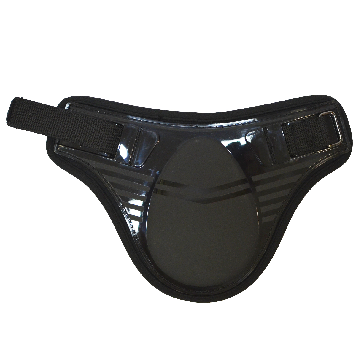 Задние ногавки (Tendon Boots Hind) из высококачественного пластика с неопреновой подкладкой. Застегиваются на ремешок из нейлоновой тесьмы. Эта ремешок состоит из двух частей, одна из которых подлиннее и с обеих сторон представляет собой липучку. У второго липучка пришита только с одной стороны. Более длинная двусторонне липкая часть продевается через металлическое колечко и, застегиваясь, вкладывается под второй. Весь нейлоновый ремень проходит через пластиковую основу, при этом находясь под ней. Это обеспечивают надежную фиксацию ногавок. Неопреновая подкладка позволяет коже дышать, не натирает. С наружной стороны ногавки выглядят стильно благодаря сочетанию матовых и глянцевых рисунков на пластике.