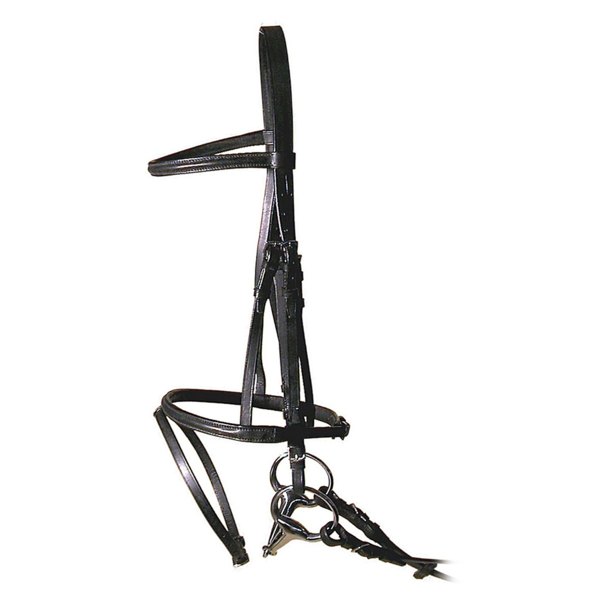 Оголовье эконом-класса из натуральной кожи с капсюлем-восьмеркой и тесьмяным поводом.