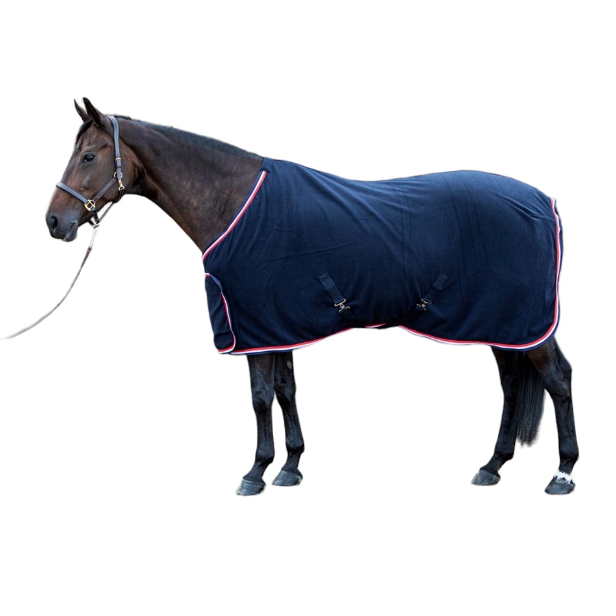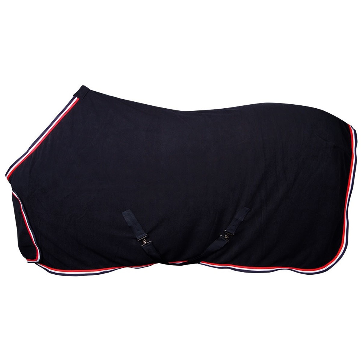 Флисовая попона (Fleece rug) имеет хорошее водопоглощение, может использоваться для сушки в деннике. Подбрюшные ремни, петля для хвоста в задней части попоны предотвращают ее сползание. Спереди имеется широкая застежка-липучка. Попону украшают декоративная тесьма по контуру.