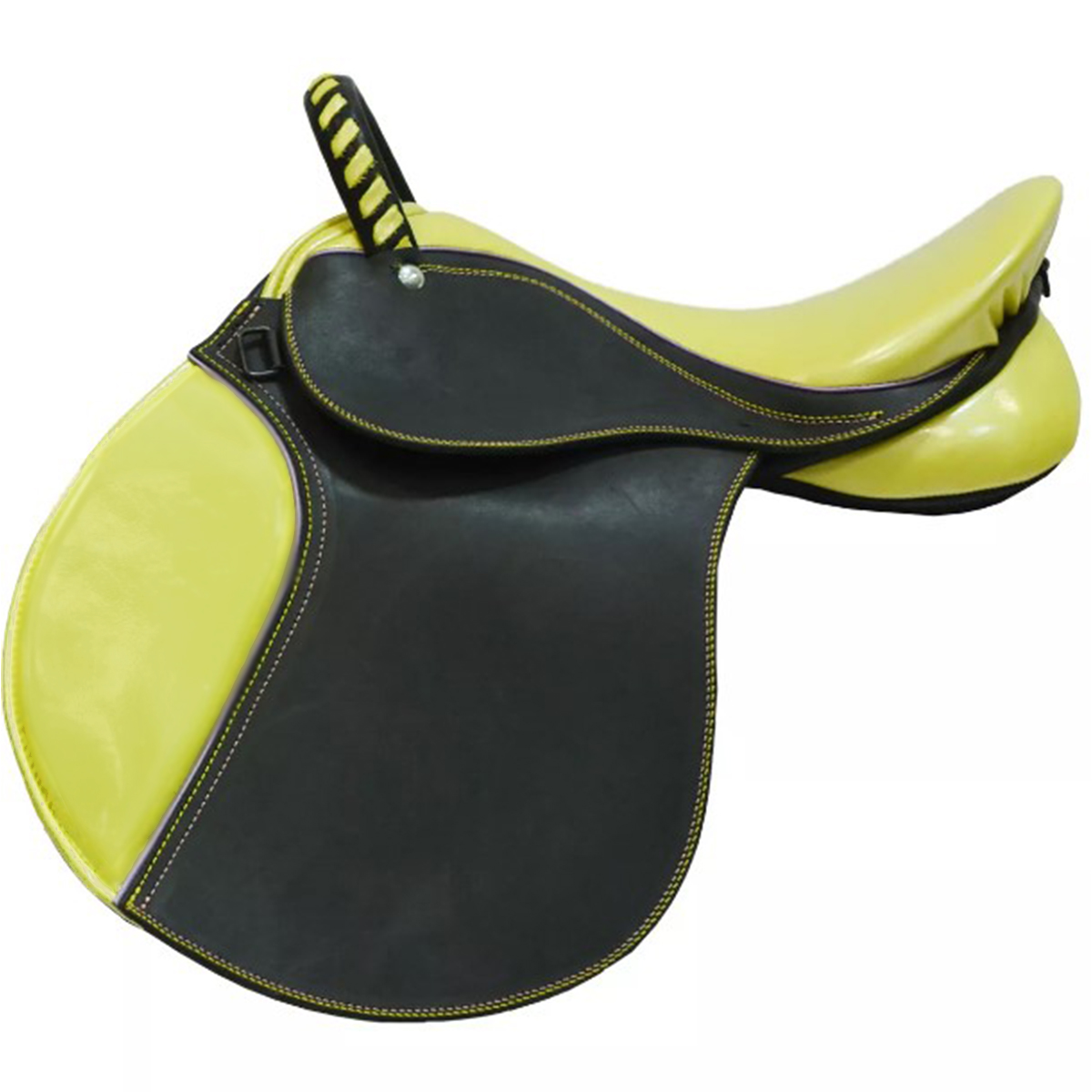 Удобное седло из цветной кожи (saddle) для пони с ручкой на передней луке. Форма седла наиболее приближена к универсальному, что обеспечивает правильную посадку ребенка как начинающего спортсмена. Удобная ручка на седле позволяет приобретать опыт верховой езды даже самым юным всадникам. Элементы седла красиво выделены кантом из кожи контрастного цвета и прошиты нитками в тон канта. Всё это дополняет классический дизайн седла и делает его уникальным подарком.