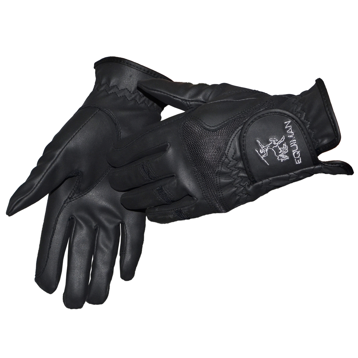 Перчатки (riding gloves) для верховой езды из полиуретановой кожи. Эластичные вставки из сетки пропускают воздух, что обеспечивает комфорт во время езды. Застегиваются на липучку в области запястья. С усилением в области указательного пальца для лучшего сцепления с поводом. Перчатки хорошо облегают руки не стесняя движения. Удобные и износостойкие.