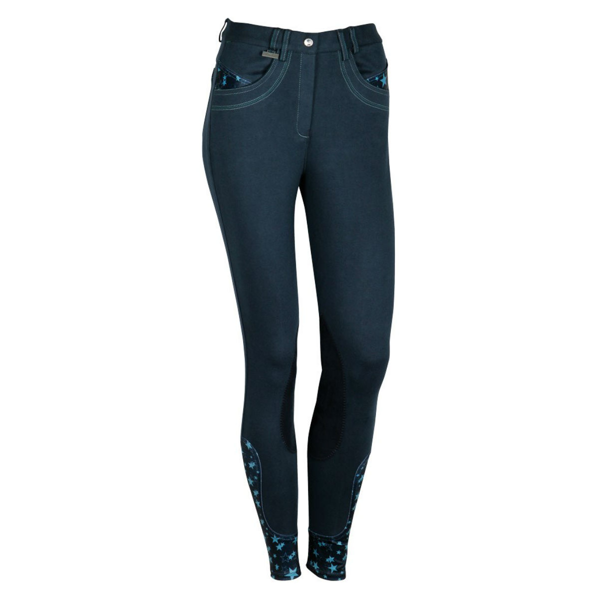 На бриджах два передних кармана и два накладных кармана сзади, украшены тканью с "звездным" принтом.