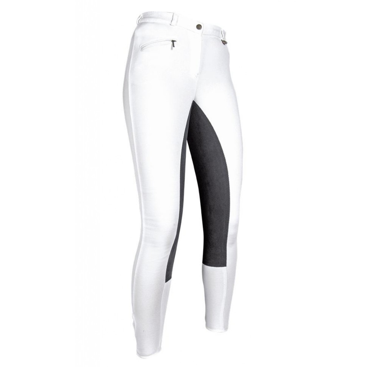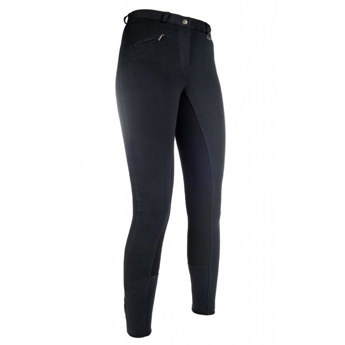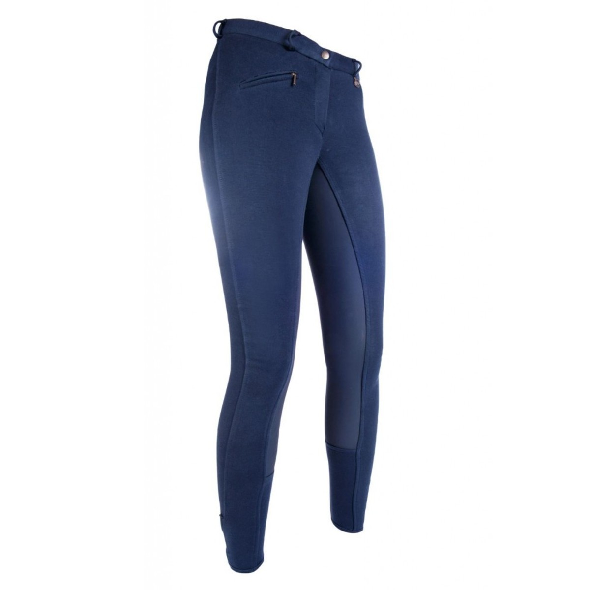 Бриджи классического покроя с полной леей (Cotton breeches with full seat) из высококачественного трикотажа. Благодаря высокому содержанию хлопка бриджи приятны к телу, а добавление эластана позволяет им сохранять форму. Лея из материала Belmtex обеспечивает надежное сцепление с седлом. Талия средней высоты хорошо закрывает поясницу. Передний карман на молнии. Низ брючин застегивается на липучку.