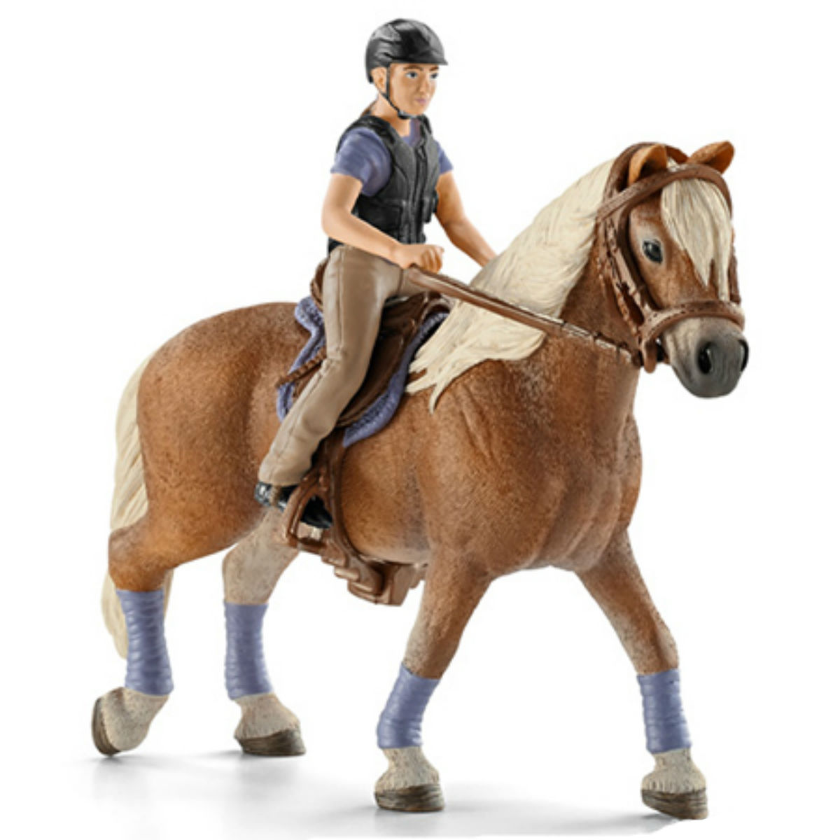 Профессиональная наездница грациозно прогуливается верхом на своей белогривой лошадке. Ребенок сможет создать интересную игру с участием реалистичных персонажей от немецкой компании Schleich.