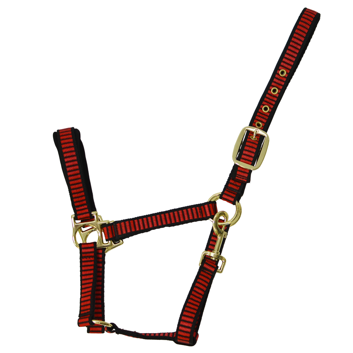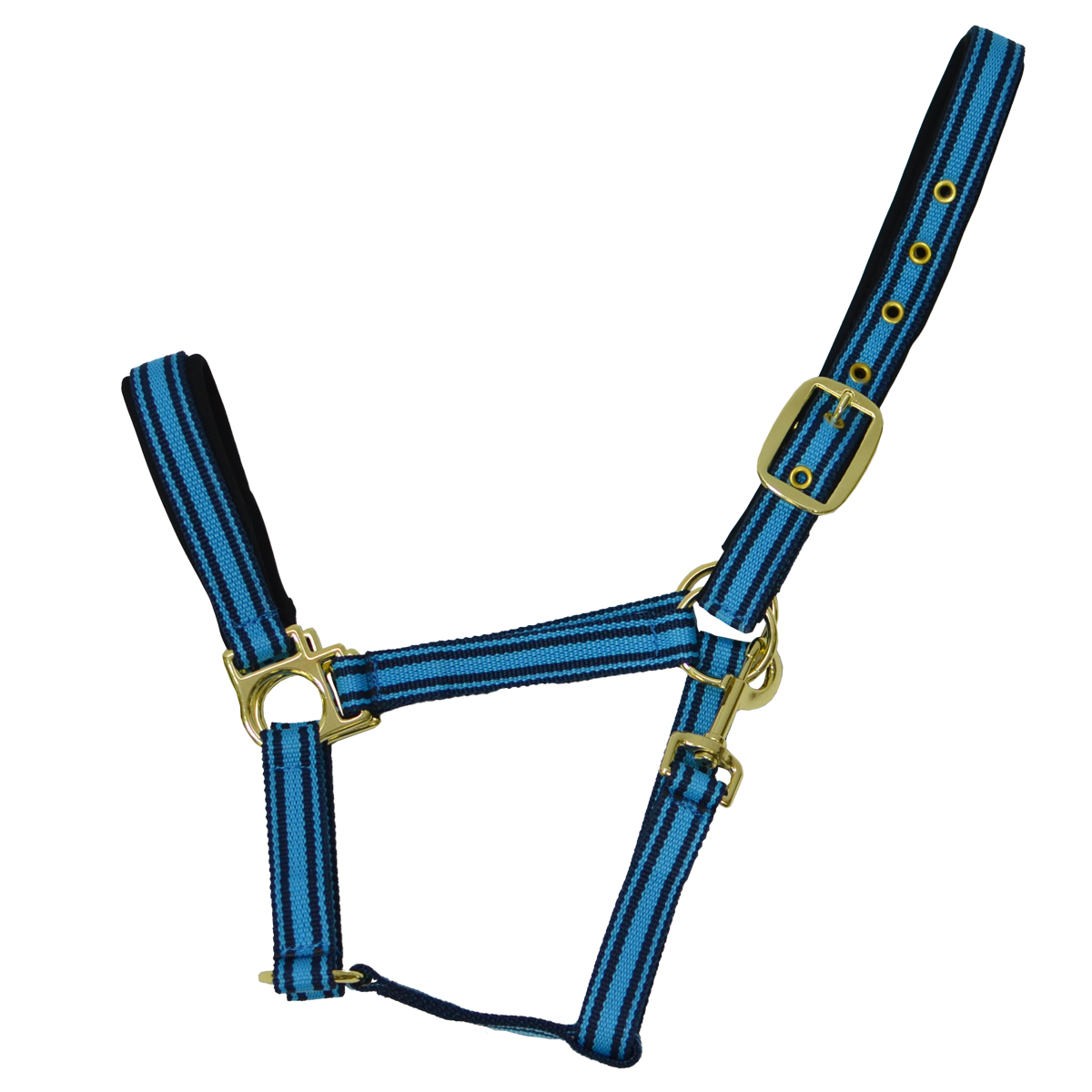 Яркий недоуздок (Halter) из прочной нейлоновой тесьмы. Затылочный и носовой ремни имеют мягкую неопреновую подложку, что предотвращает натирание. Регулируется на затылочном ремне, что обеспечивает идеальную посадку на голове лошади. Недоуздок легко снимается и одевается благодаря карабину. Фурнитура золотого цвета.