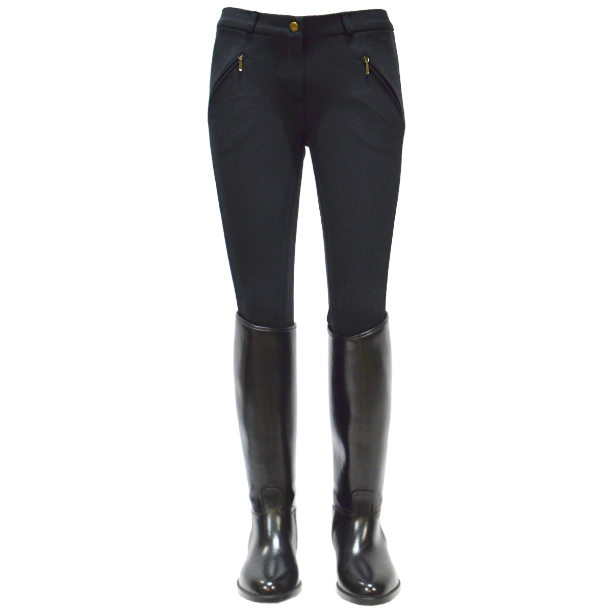 Трикотажные бриджи (Breeches) классического покроя с полной леей. Полная эластичная лея из искусственной замши позволяет легко удерживаться в седле. Благодаря высокому содержанию хлопка бриджи приятны к телу, а добавление спандекса позволяет им сохранять форму. Талия средней высоты хорошо закрывает поясницу. На поясе петли для ремня, два передних кармана на молнии. Снизу эластичный "чулок", вместо привычной засежки на липучке. Чулок позволяет легко отрегулировать бриджи по длине, а так же упрощает одевание бриждей под гольфы или краги.